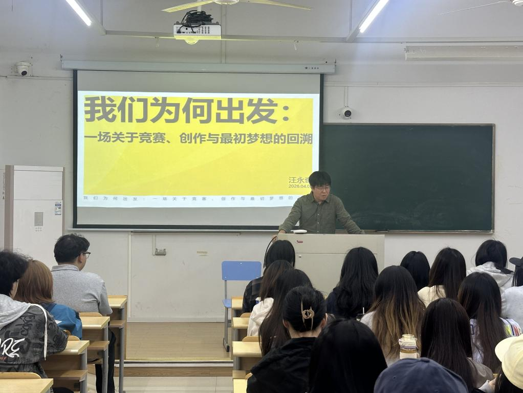 讲座中,汪永奇副教授以“我们为何出发”为切入点,结合自身教学与竞赛指导经历,阐述竞赛与创作的内在关联,强调坚守创作初心、立足专业本质的重要性。随后,他围绕大广赛参赛要点,结合优秀案例拆解备赛核心环节与技巧,从组队、创意、打磨等方面给出针对性建议,并解答师生备赛困惑。